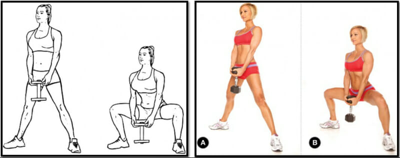 В зависимости от поставленных целей можно регулировать ширину постановки ног: для максимальной нагрузки на ягодицы и квадрицепсы — ставить их ближе друг к другу, для проработки внутренней и задней поверхности бедра — шире, чем ширина плеч.