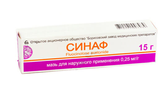 Активное вещество — флуоцинолона ацетонид. Эффективно снимает гиперемию, отеки и неприятные ощущения |
