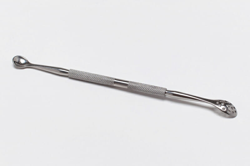 - Ложечку Уно прикладывают так, чтобы отверстие на инструменте оказалось над черной точкой.