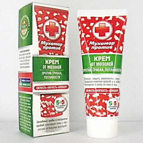 Средство производителя Венец Сибири помогает не только устранить раздражение, мозоли и шелушения, но и снимает болевые ощущения, предотвращает появление грибка, снижает потливость ног. Производиться с применение экстрактов лекарственных трав и грибов. Главные компоненты каштановый гриб и лофант. Можно наносить на стопы каждый день в течение длительного периода времени.