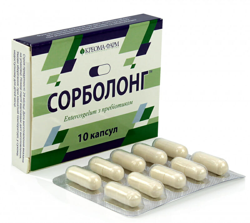 Сорболонг — комбинированное лекарственное средство. Этот сорбент — это совмещение детоксиканта энтеросгеля и пребиотика инулина. Выпускается в форме капсул с бежевым порошком внутри.