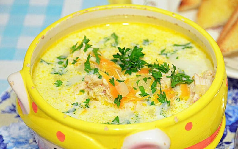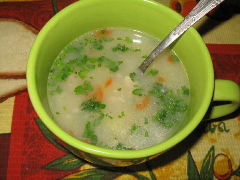- В бульон вносят стружку сыра и продолжают томить на малом огне минут 20 до получения однородной консистенции, не забывая периодически помешивать. Пробуют и добавляют по вкусу соль с перцем.