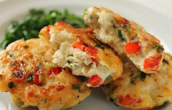 - Добавляют мелко покрошенный репчатый лук, сырое куриное яйцо, нарезанный кубиками сладкий перец.
