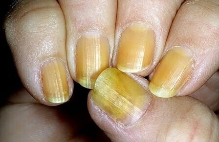 Оттенок ногтя меняется равномерно при тотальной форме патологии. Цвет зависит от вида возбудителя.