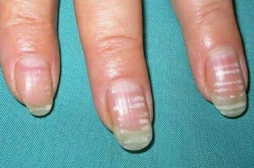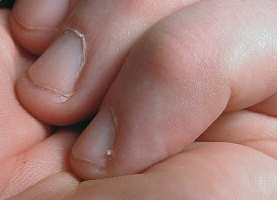 Белые пятна появляются, если пациент страдает проксимальным видом онихомикоза. Развивается симптом из-за отслоения ногтя у его основания, а в процессе роста между пластиной и тканью образуется полость. Это и вызывает такие пятна.
