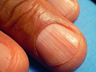 Одним из самых распространенных признаков является изменение толщины ногтя по типу гипертрофии или атрофии. При первом наблюдается утолщение, характеризующееся неравномерностью на больших пальцах и равномерностью на мизинцах из-за маленькой площади пластины. Атрофия возникает из-за нарушения питания ногтя, и отмечается его истончение.