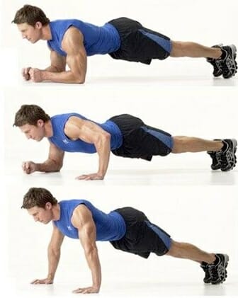 - Принять исходное положение — стойка на вытянутых руках.