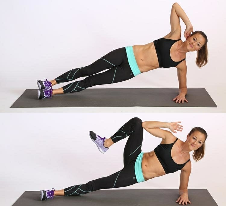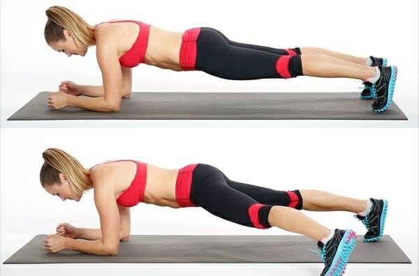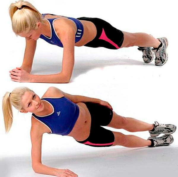 Этот вид планки больше подходит для женщин, эффективно справляется с жировыми отложениями в области ягодиц и бедер. Требует больше энергии, чем классическая планка, а значит, сжигает больше калорий в минуту (5,5–6). С этого вида упражнения следует начитать любые динамичные планки.