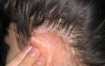 Для хронической формы характерно более глубокое поражение. В районе входа в наружный слуховой проход кожа трескается.