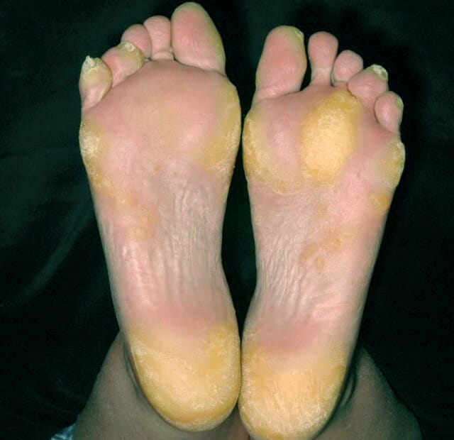 Причиной также может стать гиперкератоз — кожное заболевание, при котором происходит утолщение рогового слоя. При этом омертвевшая кожа тяжелее отшелушивается.