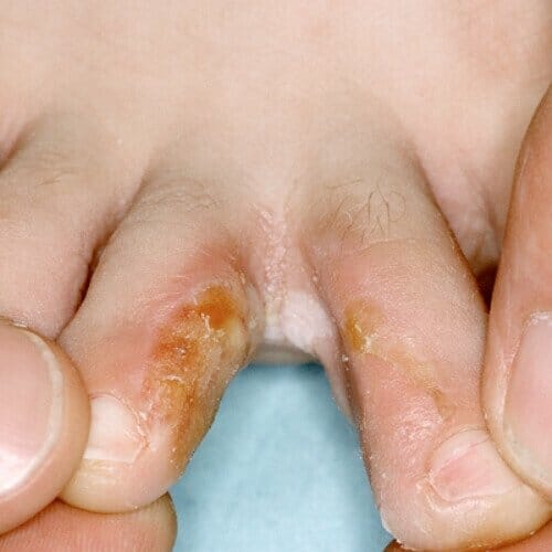Серьезную проблему представляет собой так называемая диабетическая стопа. Она является результатом развития сахарного диабета, когда поражаются периферические нервы, кожа и мягкие ткани. При заболевании кожа становится сухой, легко трескается, на ней образуются мозоли и потертости.