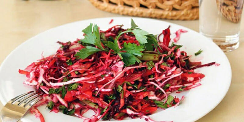 Добавление красной капусты в салат сделает его еще более аппетитным на вид.