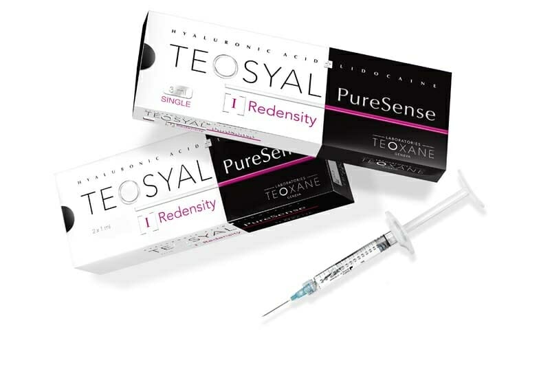 - Teosyal Pure Sense Redensity. Помимо гиалурона, содержит антиоксиданты, витамины и аминокислоты. Препарат позволяет усилить иммунитет и стимулирует обменные реакции. После его использования выравнивается рельеф и оттенок кожи, исчезает гиперпигментация.