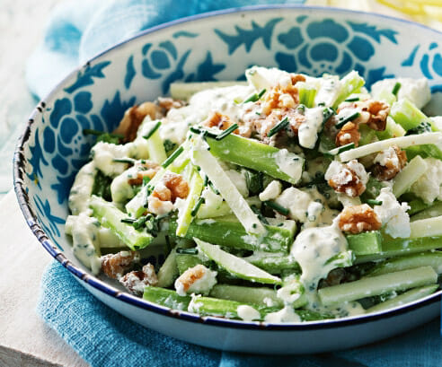 - Смешивают эти ингредиенты и заправляют салат натуральным йогуртом или растительным маслом. Весной яблоки можно заменить редисом.