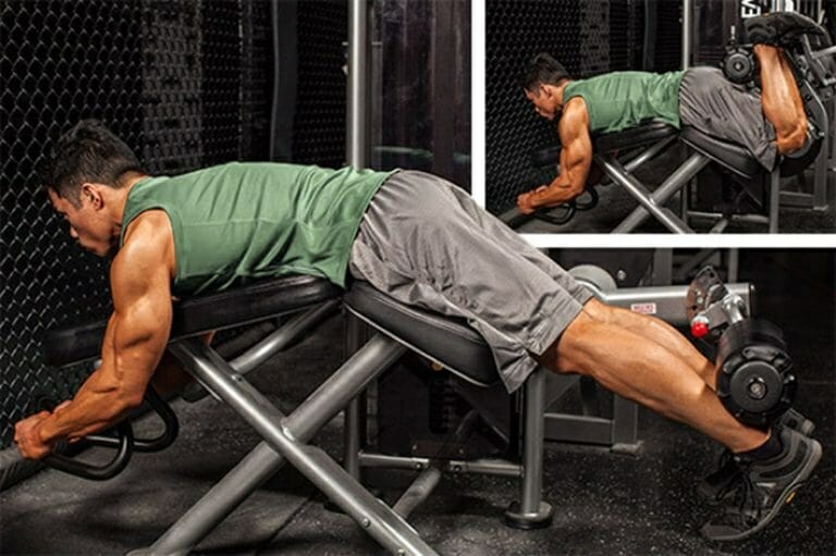В процессе выполнения сгибаний также работают мышцы ягодиц и голеней. Но нагрузка на них довольно мала.