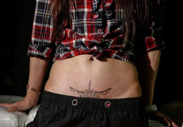 Замаскировать шрам, оставшийся после операции, поможет художественная татуировка. Такой способ не является безопасным, поскольку во время нанесения рисунка можно занести инфекцию. Использовать этот способ маскировки шва рекомендуется тем, кто не планирует повторную беременность.