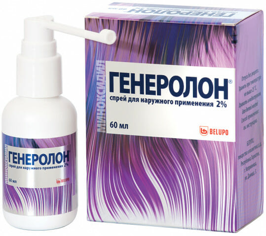 Активным веществом является миноксидил. Генеролон используется при диффузной, очаговой, тотальной и андрогенетической алопеции. Спрей действует непосредственно на фолликулы, улучшая их кровоснабжение, что увеличивает рост новых волос. Большое количество пациентов отмечают интенсивный рост волос.