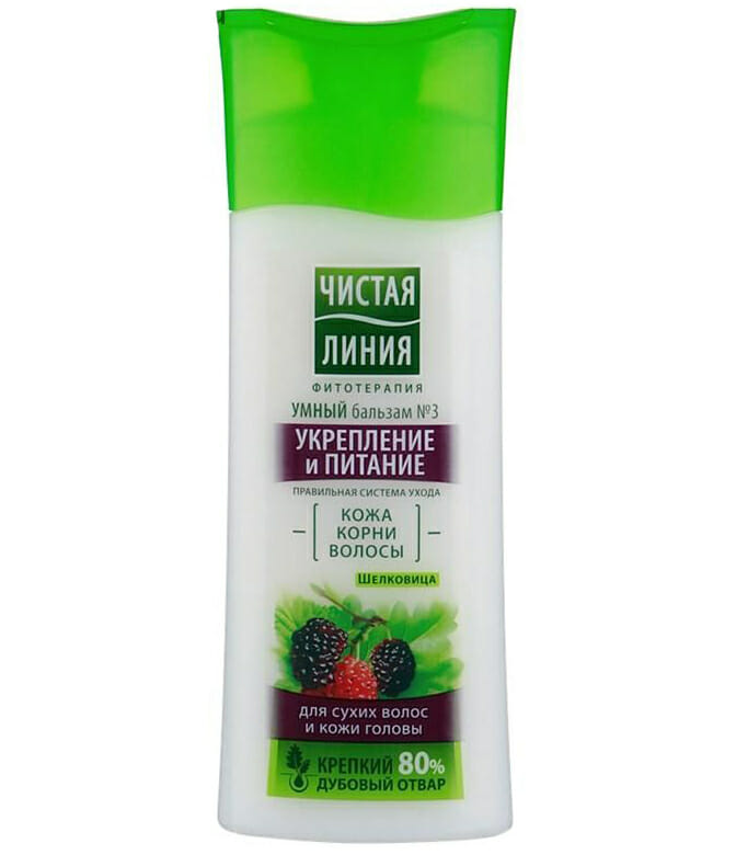 - Бальзамы «Шелковица», «Умный бальзам» (Чистая линия) —обеспечивают питание и увлажнение коже головы.