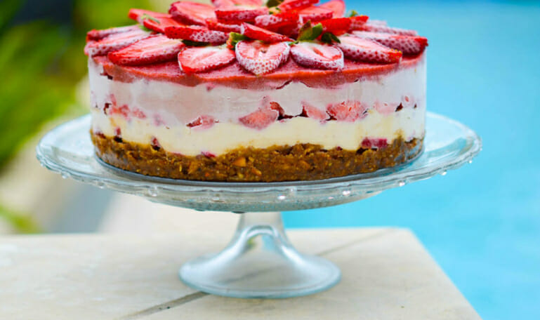 - Сверху распределяют глазурь и украшают оставшейся клубникой.