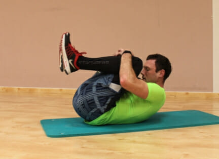 - Обхватить руками голени и зафиксироваться в такой позиции на 1-2 секунды.