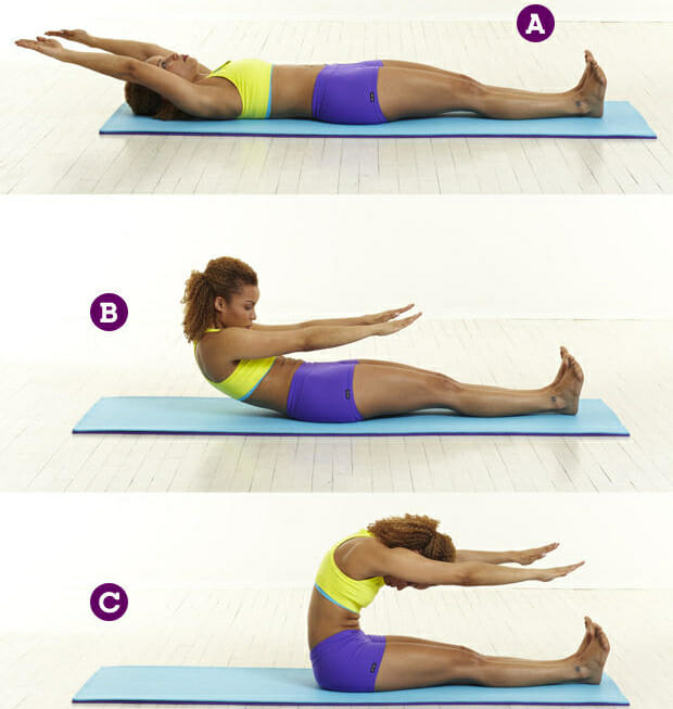 - Произвести подъем верхней части корпуса к бедрам.