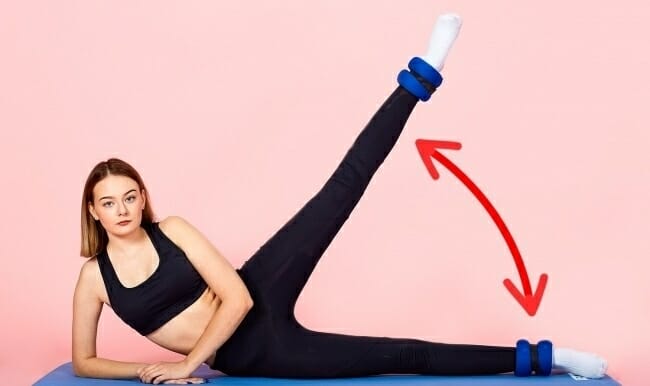 - Свести голени вместе и немного приподнять их над полом.
