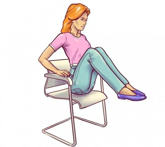 - Сесть на стул и ухватиться руками за подлокотники.