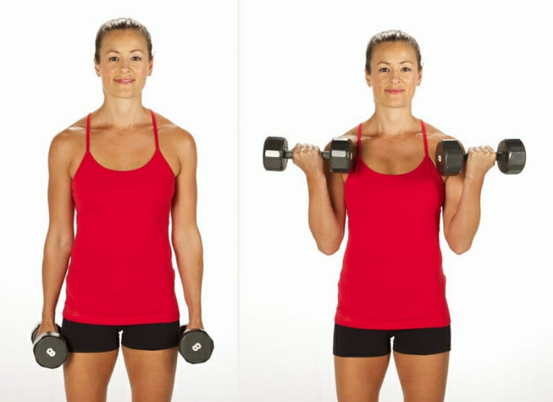 - Четверг: отжимания от пола, подъем гантелей в наклоне, подъем гантели на бицепс.