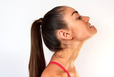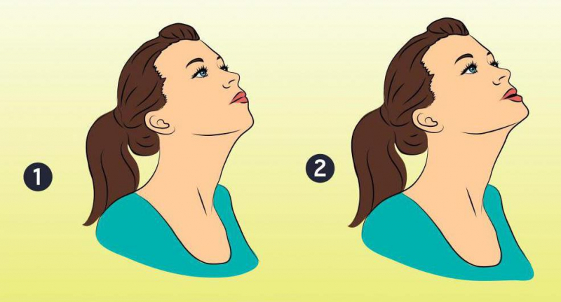 - Выдвинуть подбородок вперед и слегка приподнять.