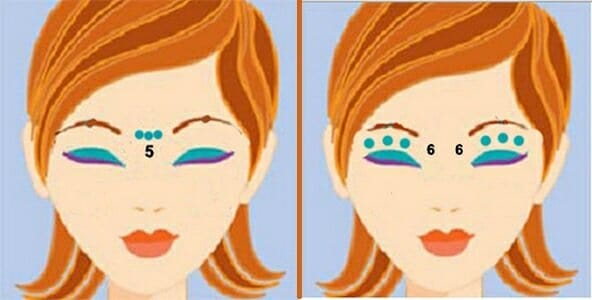 - Пальцы кладут на внешние уголки глаз, затем двигают их к носу по линии глазницы по направлению к переносице, а затем вдоль линии бровей к исходной точке. После этого круговое движение выполняется в обратном направлении — вдоль глазницы к ушным лимфоузлам, после чего следует завершающее движение. Повторяется трижды.