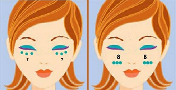 - Верхняя часть щек. Пальцы двигаются вдоль нижней части глазницы. Затем перемещаются к ушам и по направлению к ключицам для усиления оттока лимфы.