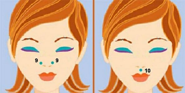 - Нос. Круговыми движениями производится массаж крыльев носа, затем костяшек. Затем выполняются базовое движение — пальцы идут по щекам, затем к области висков и вниз к ключицам.