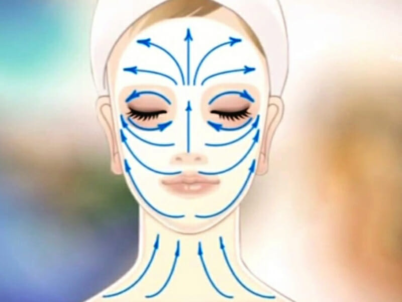 - При проведении процедуры следует помнить и об области шеи и декольте. В этом случае движения должны быть направлены к области подбородка.